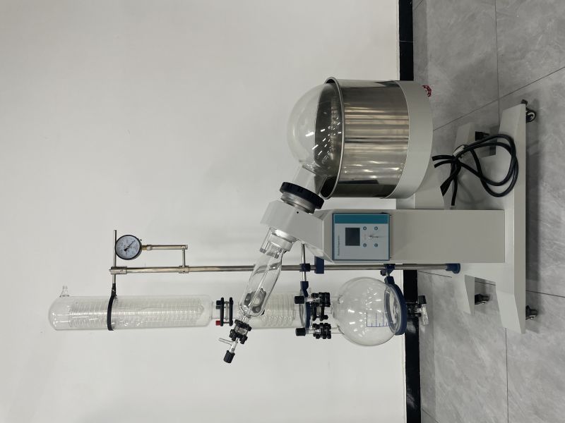 旋转蒸发仪,又叫旋转蒸发器,是实验室广泛应用的一种蒸发仪器,主要用于减压条件下连续蒸馏易挥发性溶剂,应用于化学、化工、生物医药等领域。旋转蒸发仪可以用来回收、蒸发有机溶剂。它是利用一台电机带动蒸馏瓶旋转,由于蒸馏器在不断旋转,可免加沸石而不会暴沸。同时,由于不断旋转,液体附于蒸馏器的壁上,形成一层液膜,加大了蒸发的面积,使蒸发速度加快。(由电机、旋转瓶、收集瓶、冷凝器,加料/排气阀门、玻璃轴、密封、恒温升降油水浴锅等部分组成的)